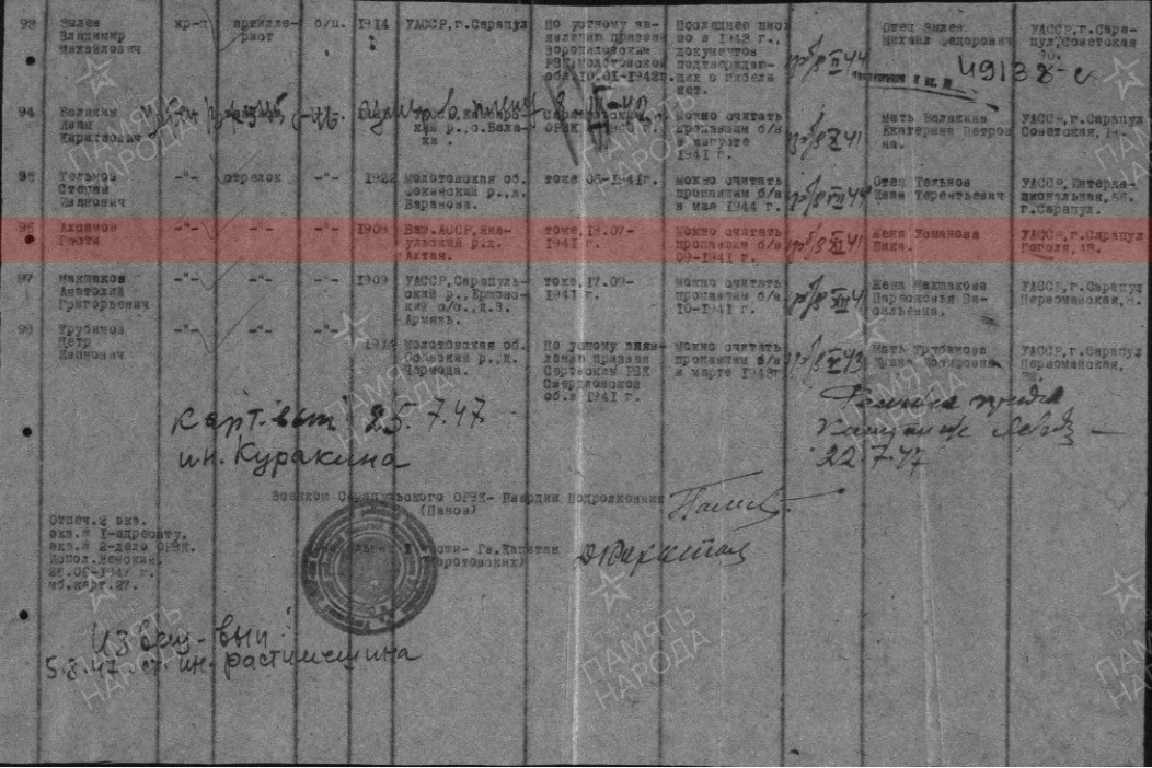 Книга Памяти. Удмуртская Республика. Т. 6. С. 320.