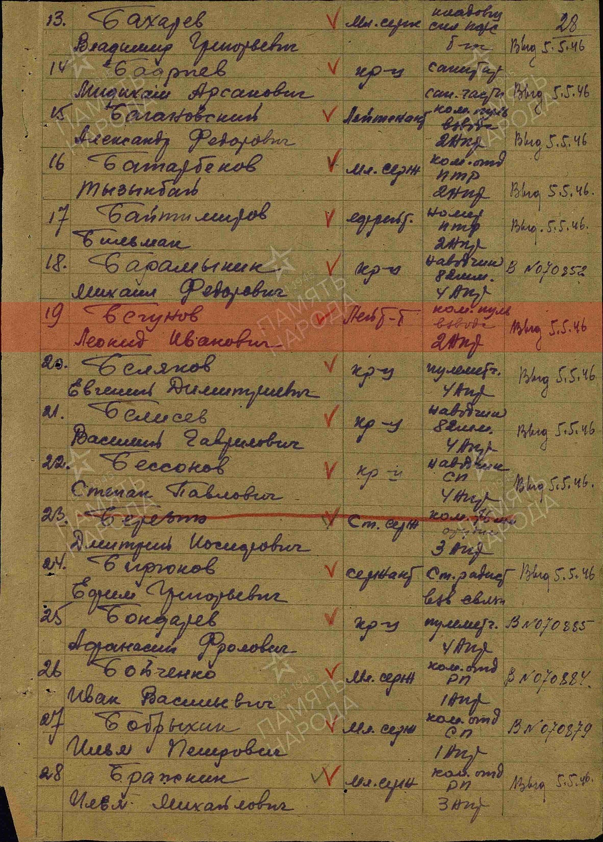 Дата окончания службы: 01.06.1946