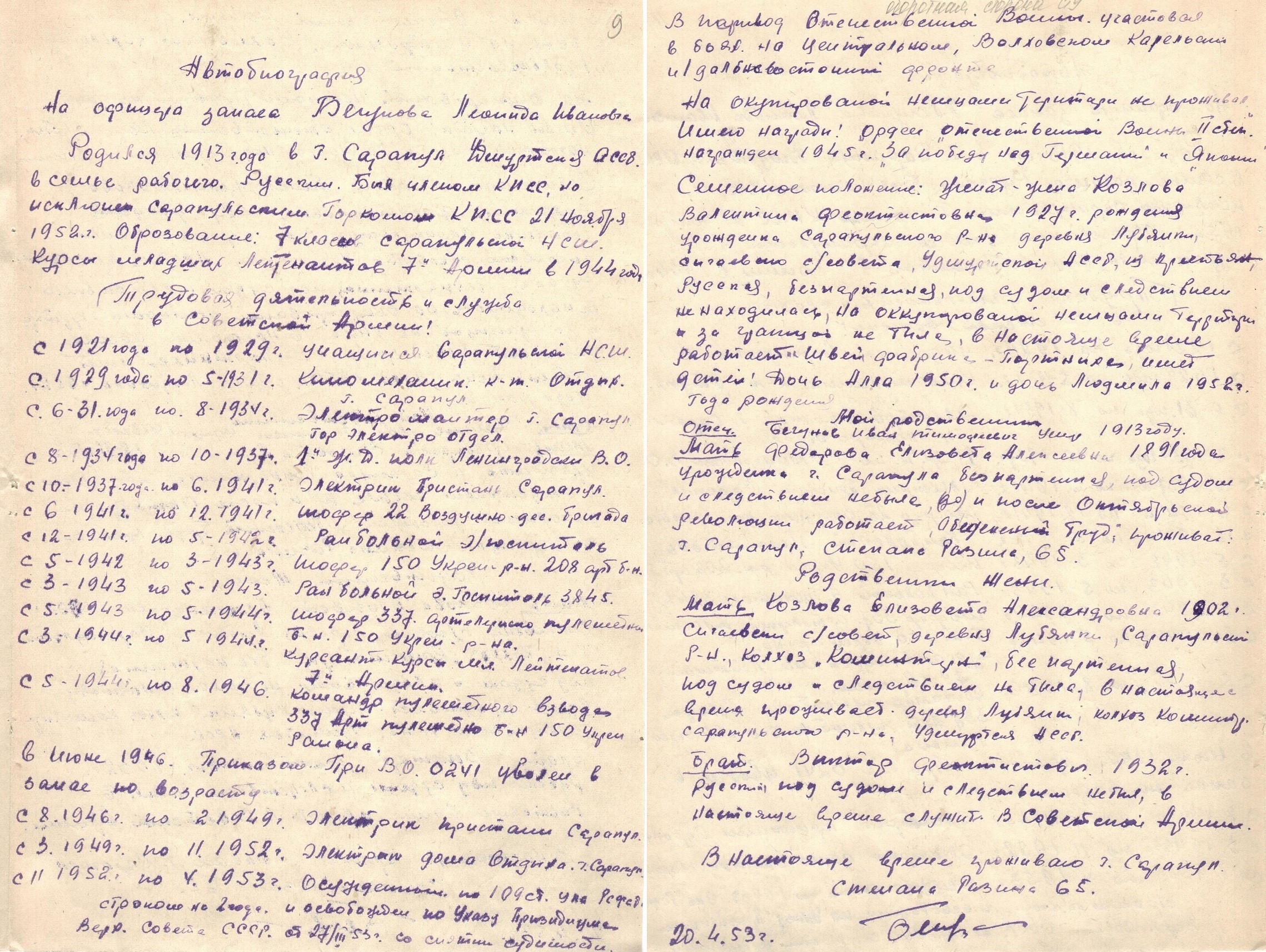Уроженец г. Сарапула Бегунов Леонид Иванович в августе 1934 года был призван в ряды РККА. Принимал участие в Советско-Финляндской войне. В Великой Отечественной войне с первых дней – был призван 23 июня 1941 года. Воевал на разных фронтах: Карельском, Волховском и Дальневосточном. Дважды был ранен. В 1944 году Леонид Иванович был командирован на курсы младших лейтенантов 7-й армии Карельского фронта. Демобилизовался в июне 1946 года.