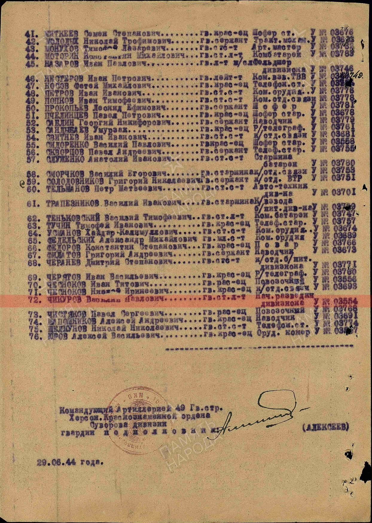 Картотека награждений, № шкафа: 93, № ящика: 26.