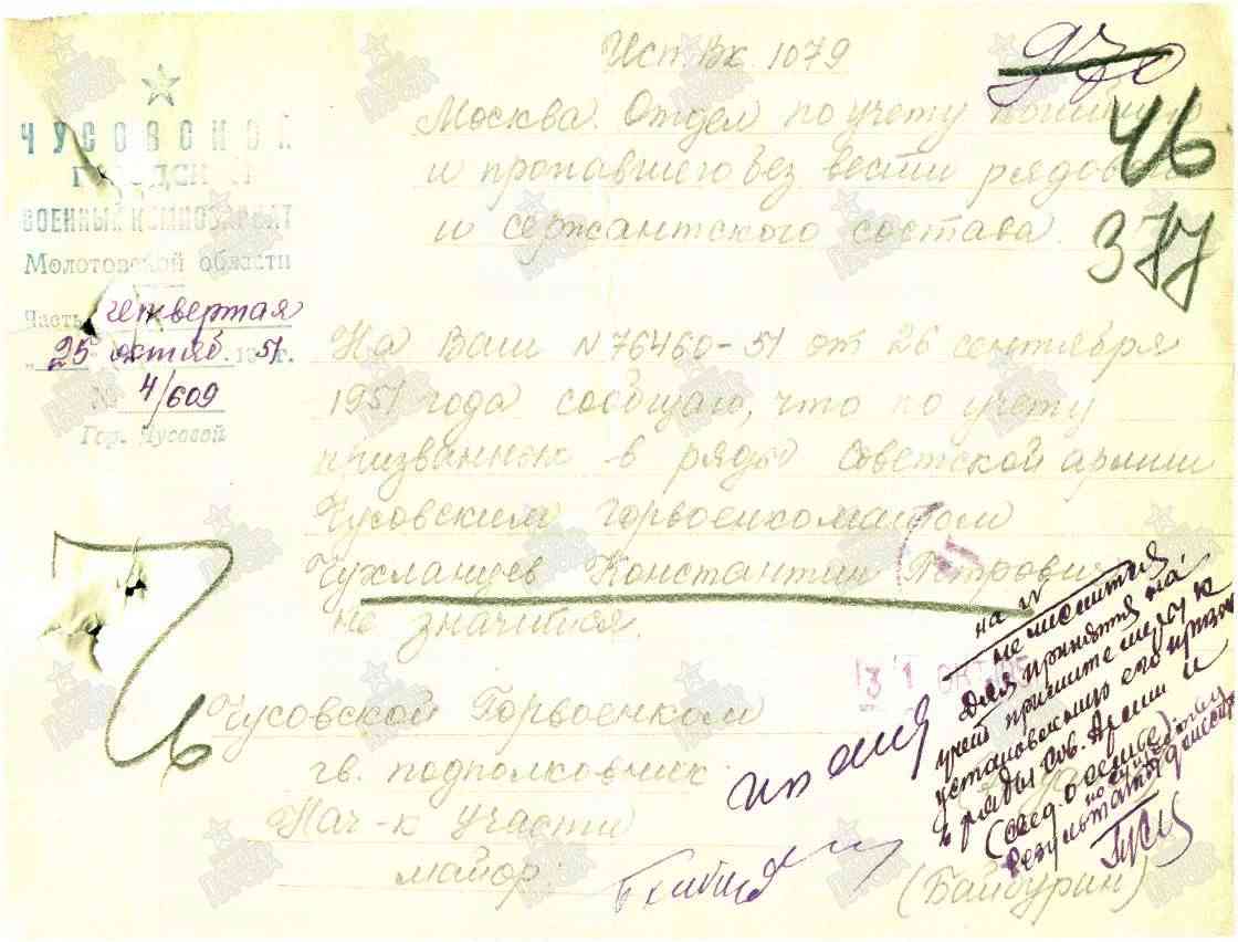 Отец: Чухланцев Петр Павлович, Молотовская обл., Чусовской р-н, п. Восход