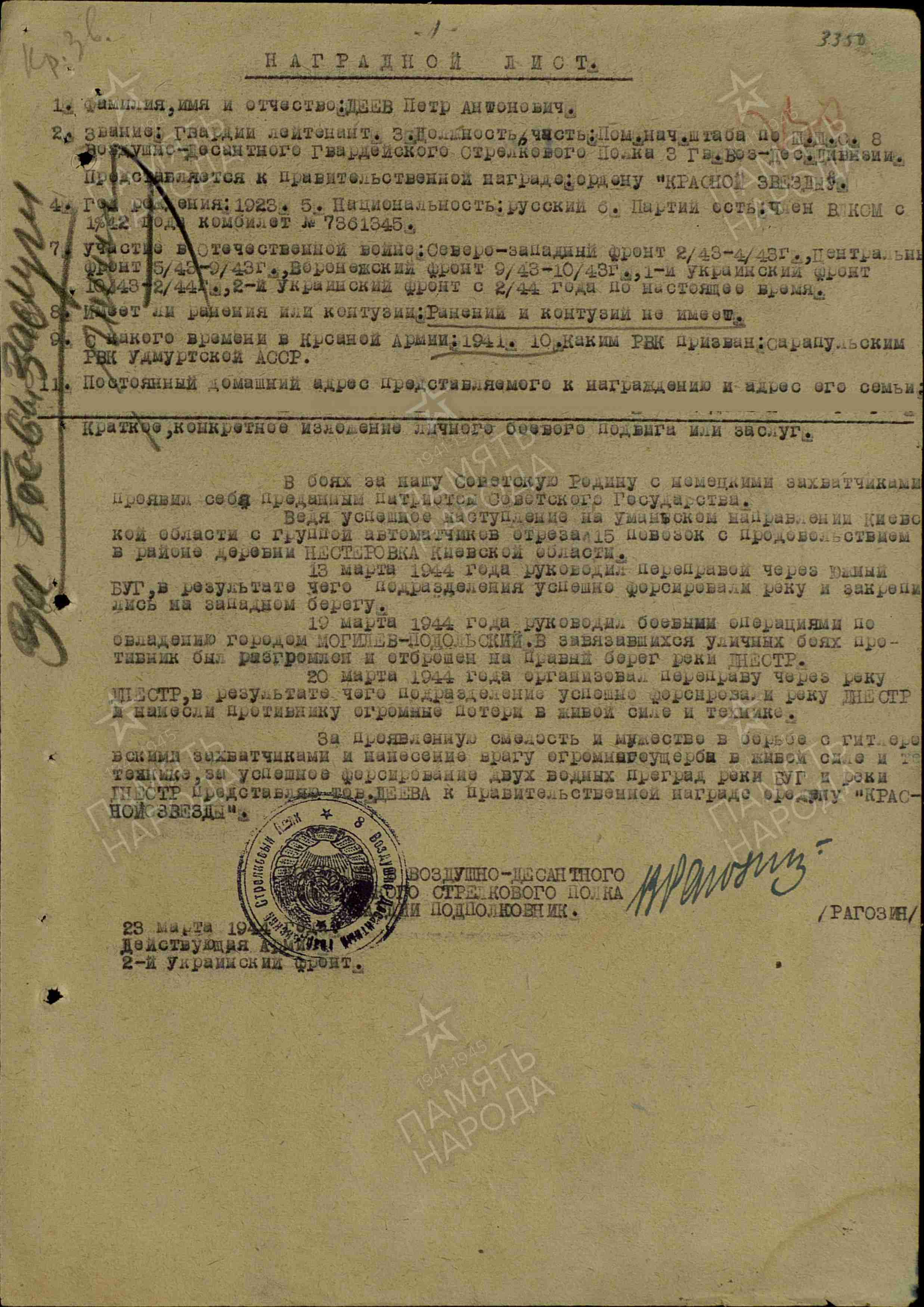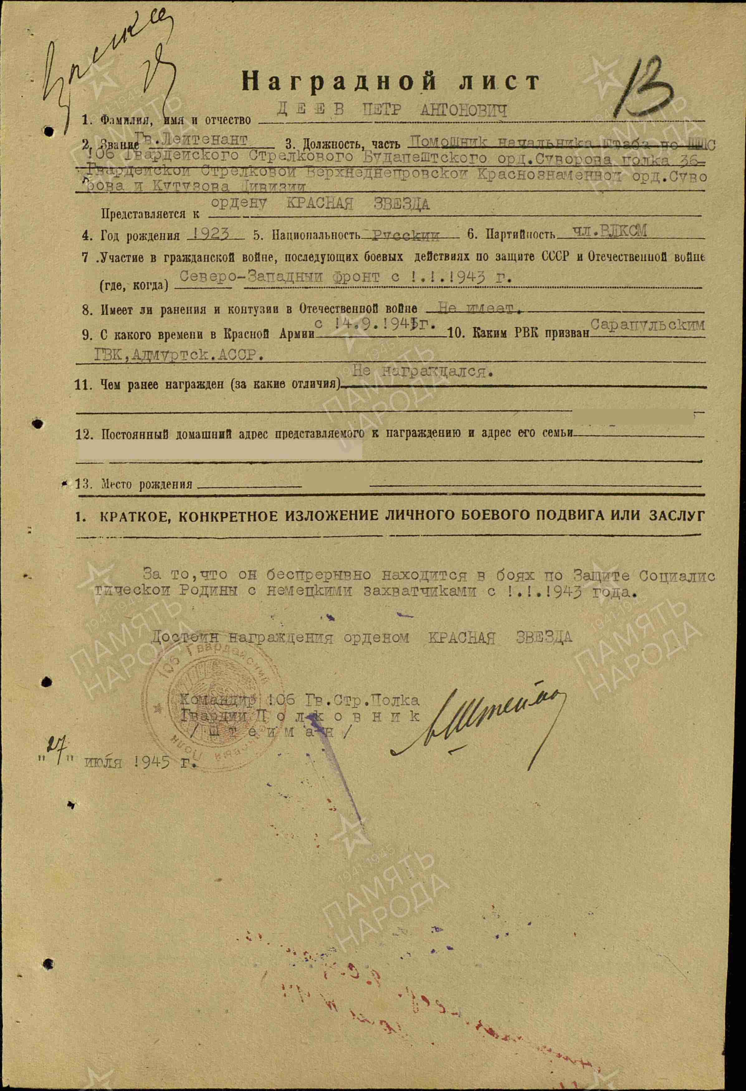 Родственники: отец Деев Антон Гаврилович, мать Деева Домна Михайловна, жена Вера Николаевна