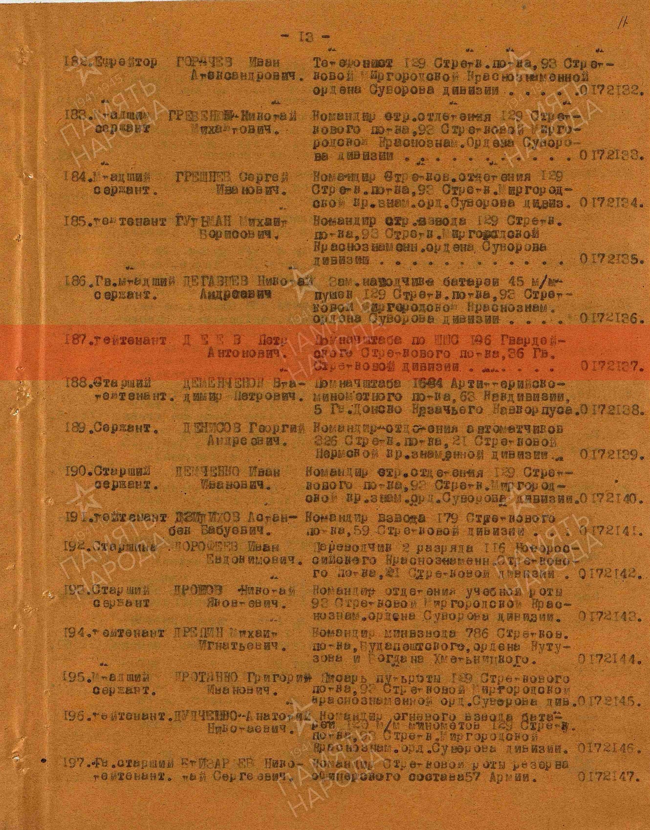 ЦАМО РФ. Ф. 33, оп. 690155, д. 1498. Ф.1261, оп. 2, д. 66. Картотека награждений, № шкафа: 26, № ящика: 10.