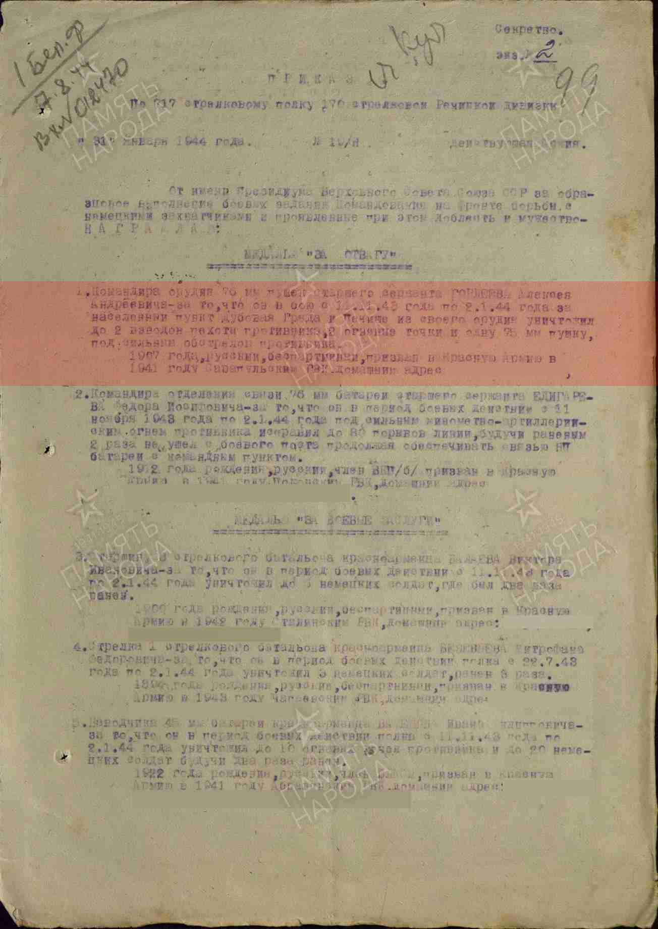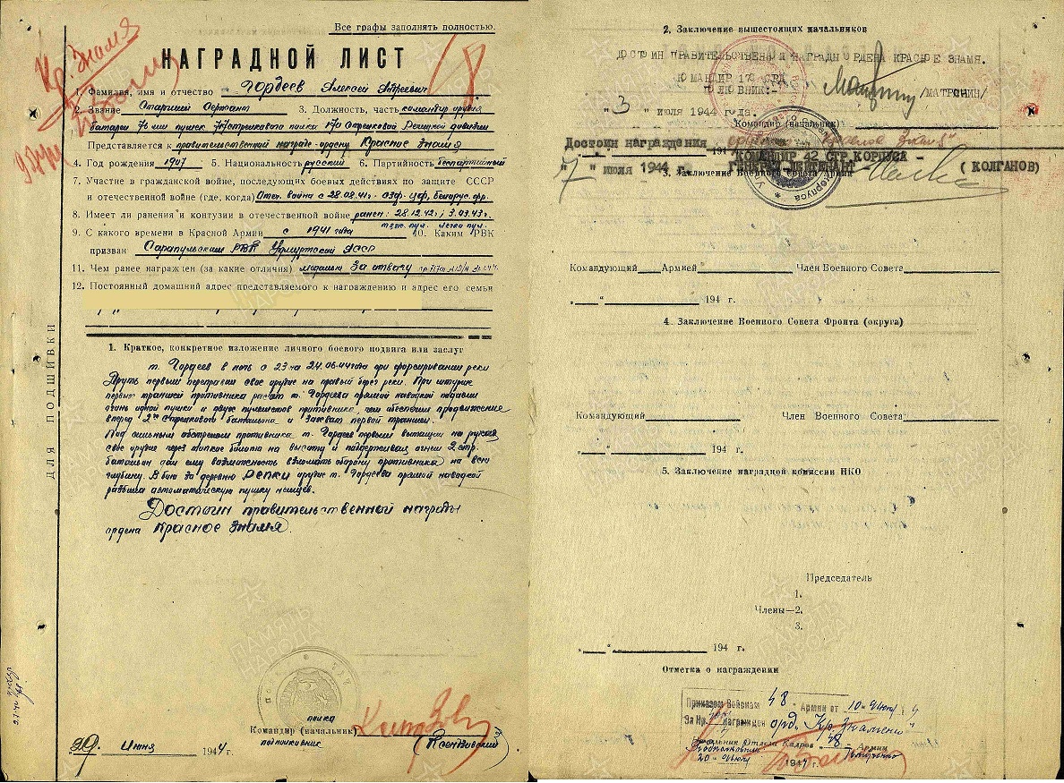 Информация по документам ГИС «Память народа», электронного архива «Удмуртия для Победы».