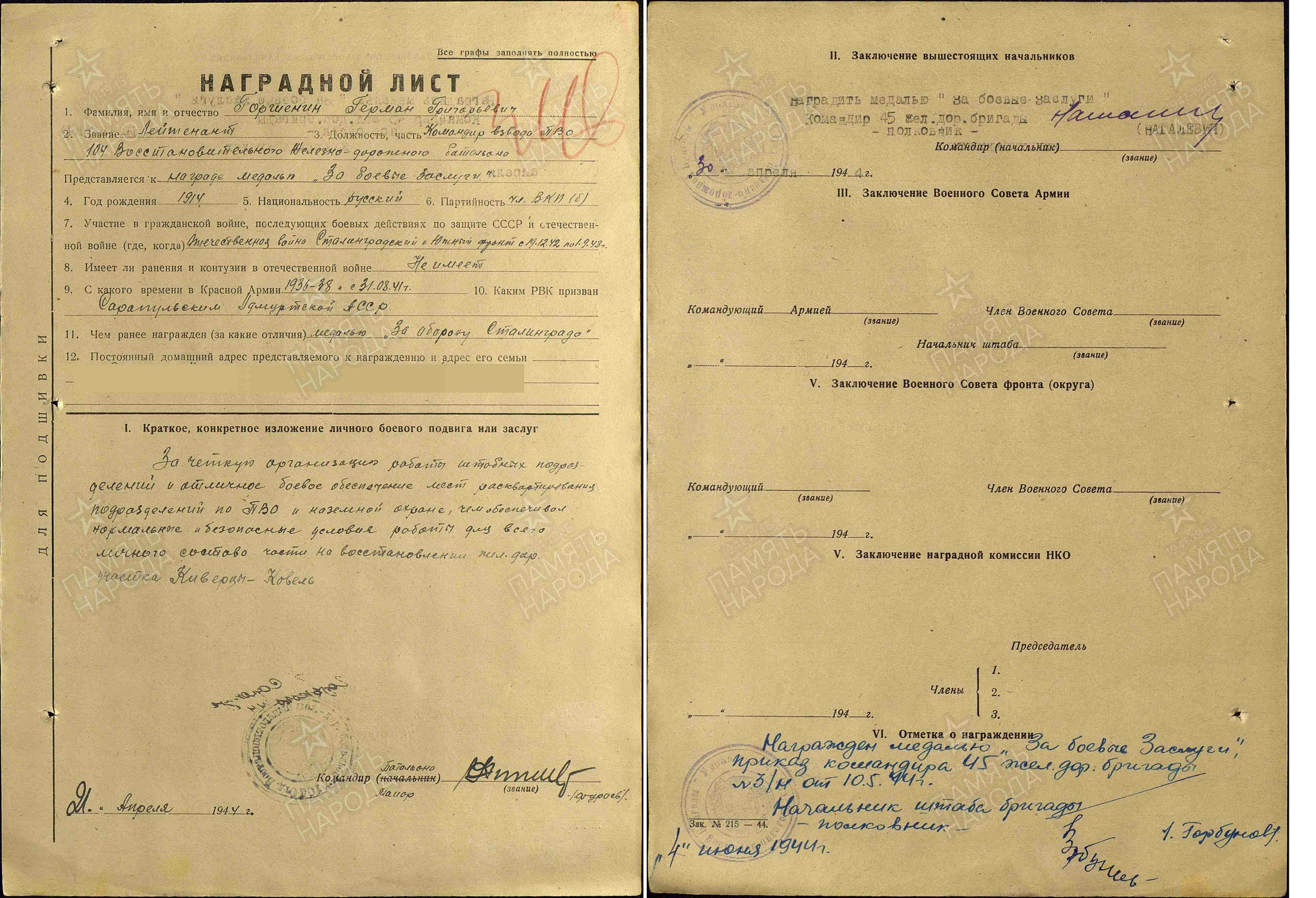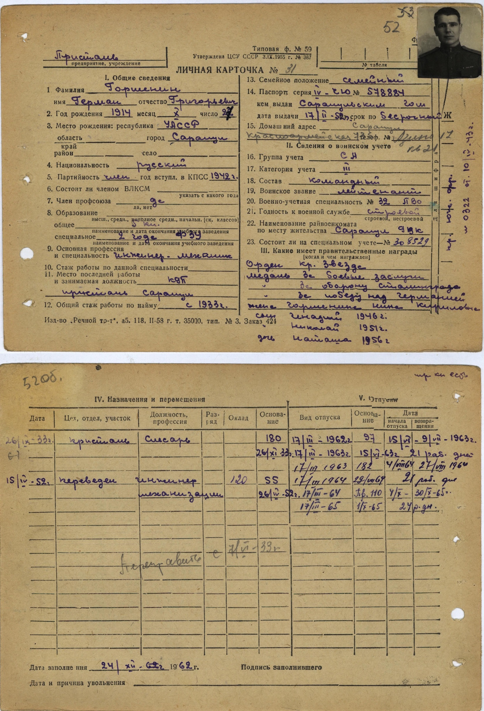 Дата призыва: 07.08.1936; 30.08.1941