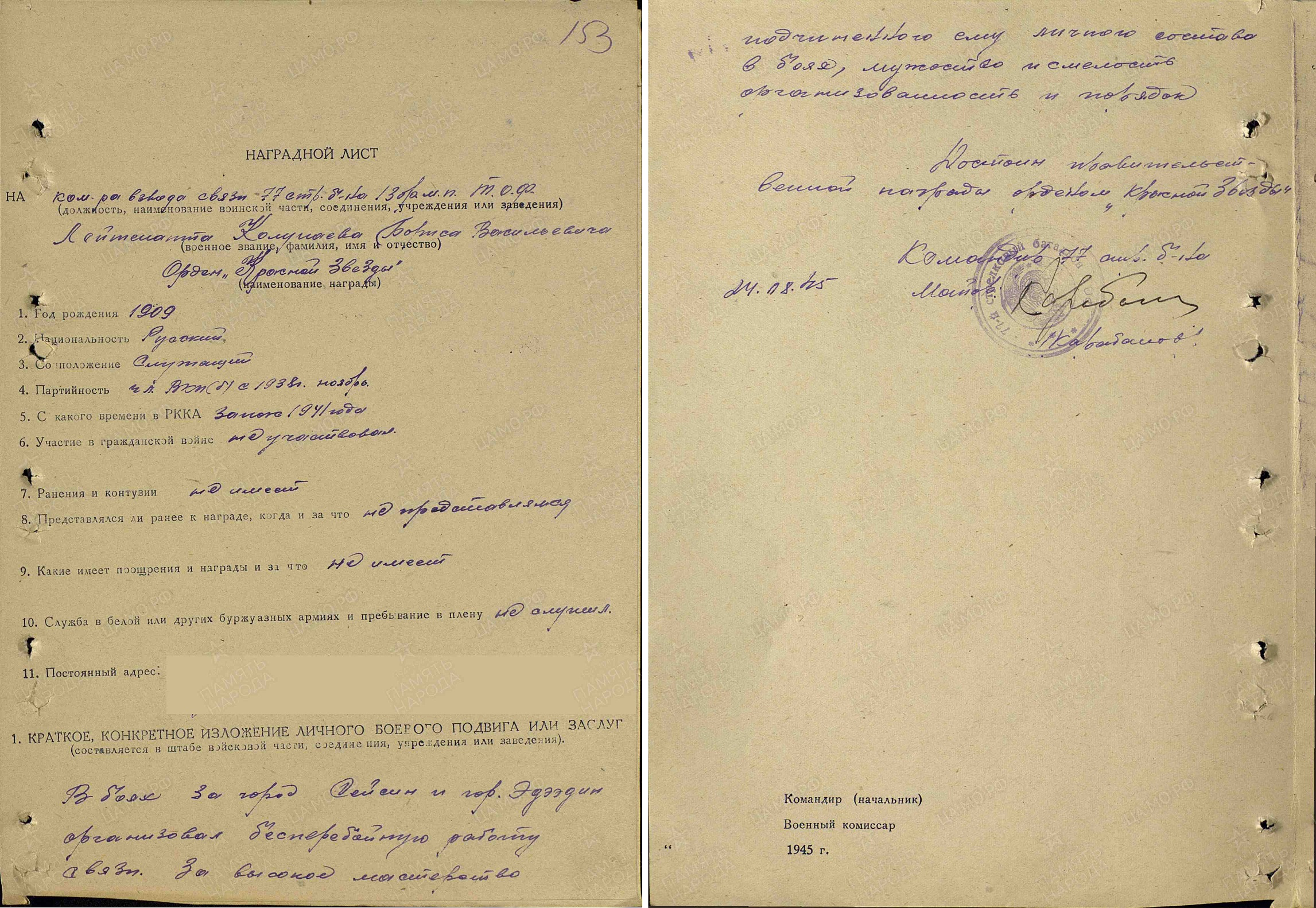 Дата призыва: 20.11.1931; 08.10.1941