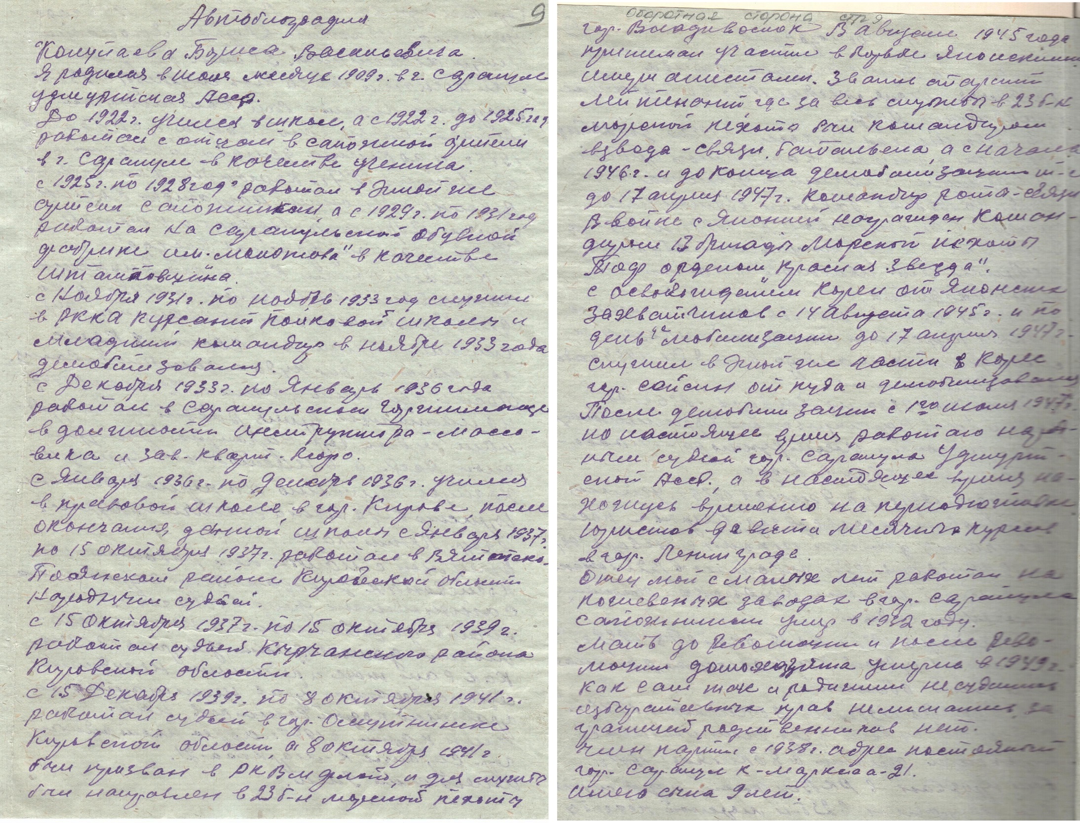 Уроженец г. Сарапула Колупаев Борис Васильевич до войны работал сапожником в сапожной артели, затем штамповщиком на обувной фабрике. С 1931 по 1933 г. проходил срочную службу. После демобилизации до 1936 г. работал в г. Сарапуле. С января по декабрь 1936 г. обучался в правовой школе г. Кирова. Работал народным судьей в Кировской области.