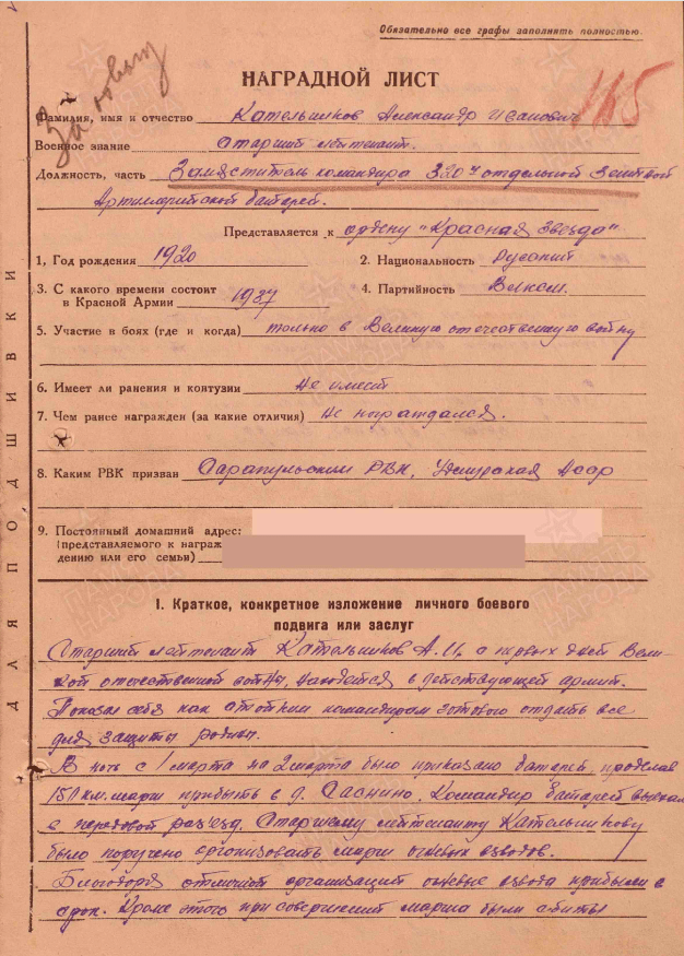 Уроженец г. Сарапула Котельников Александр Иванович в 1937 году был призван Сарапульским РВК в ряды РККА. Служил в 320-й отдельной зенитной артиллерийской батарее Северо-Западного фронта 1-й воздушной армии. В Отечественной войне с июля 1941 года.