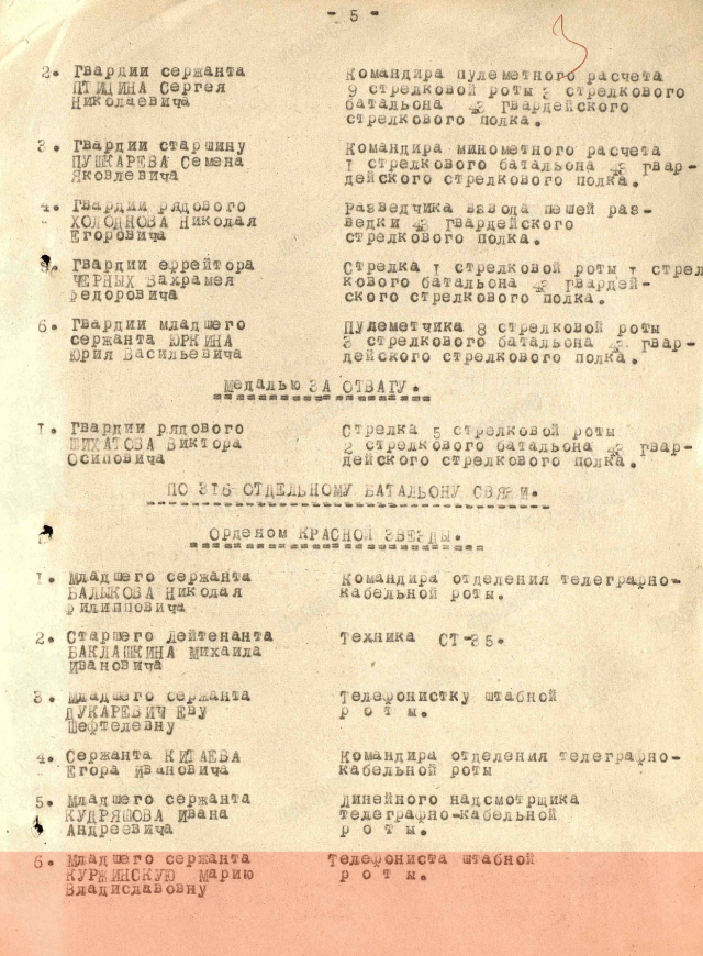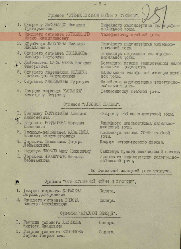 Должность: телефонистка штабной роты