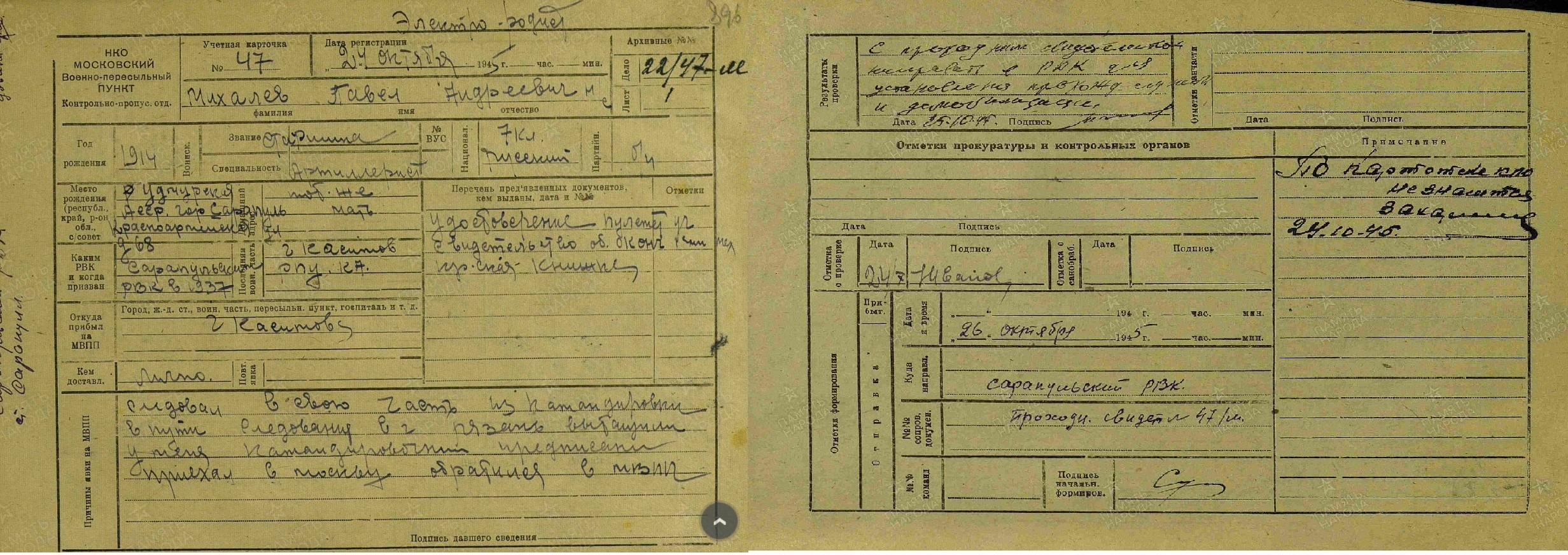 Дата окончания службы: ноябрь 1945 г.