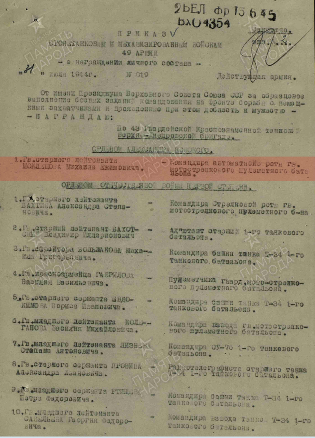 Место службы: 56 стрелковый полк, 464 стрелковый полк, 78 стрелковая дивизия; 196 танковая бригада, 145 танковая бригада, 44 танковая бригада, 46 танковая бригада, 49 армия, Белорусский фронт