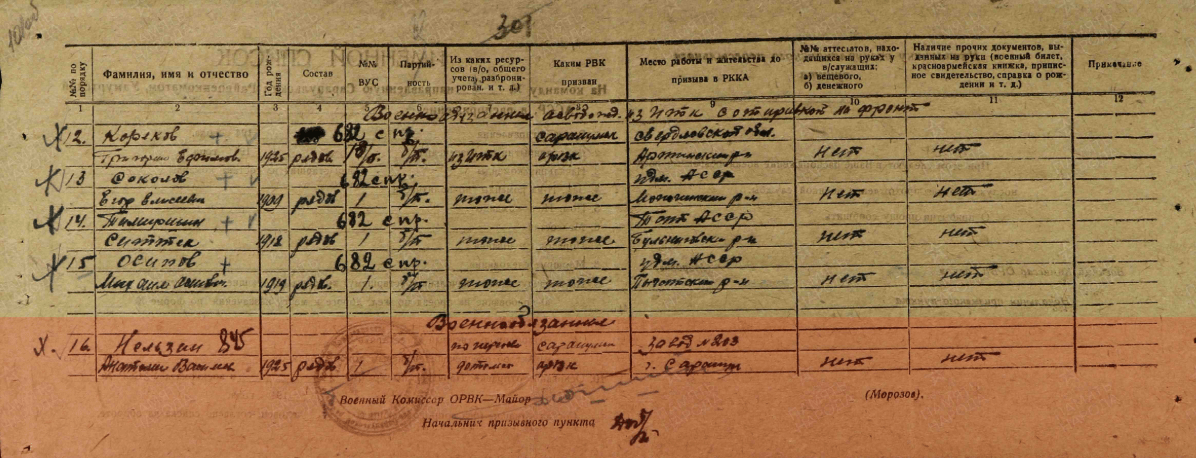 Родственники: мать Нельзина Евдокия Павловна, г. Сарапул