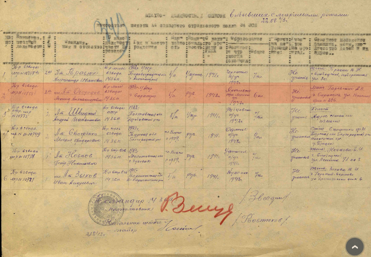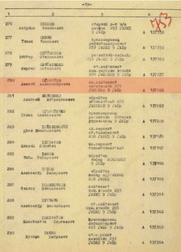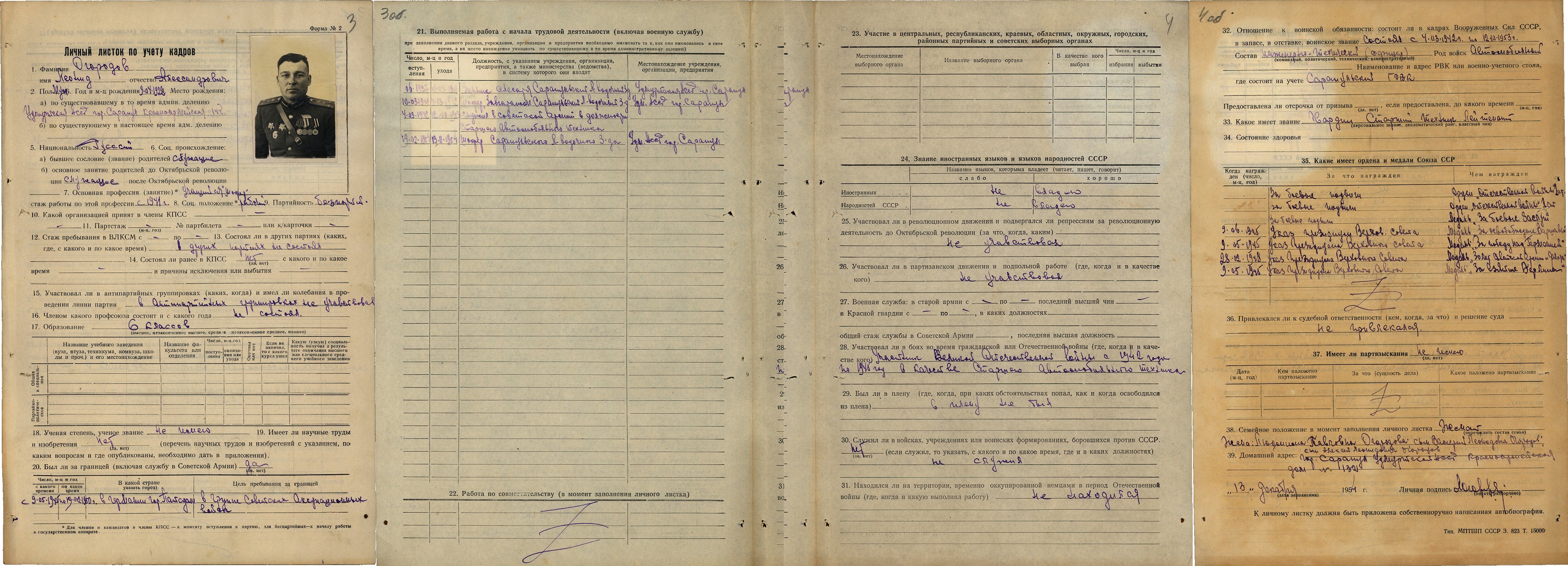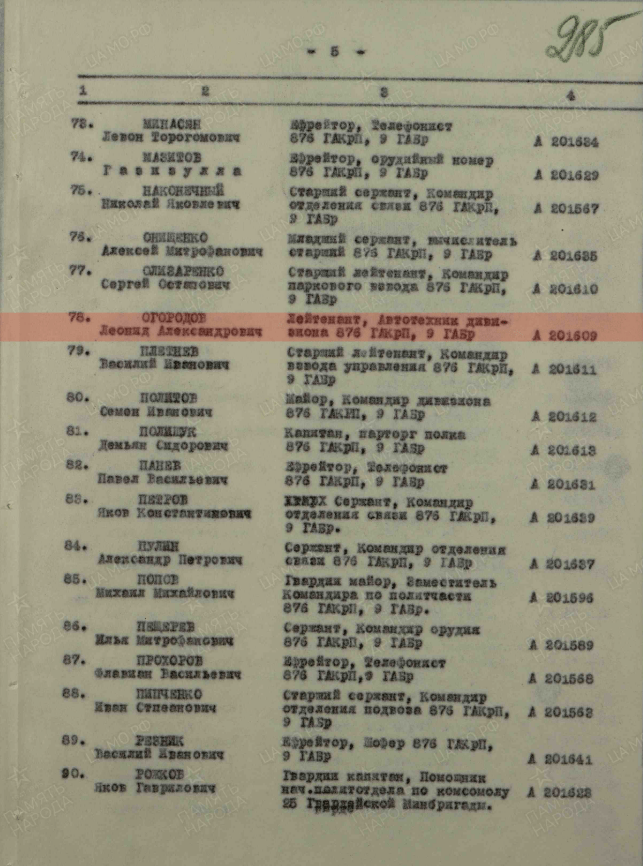ЦАМО РФ. Ф. 8237, оп. 82017, д.18. Ф. 33, оп. 687572, д.1817. Ф. 9621, оп. 2, д. 65. Ф. 9621, оп. 2, д.78. Ф. 9782, оп. 2, д. 22в. Ф. 9782, оп. 2, д. 31. Ф. 233, оп. 2317, д. 354а.