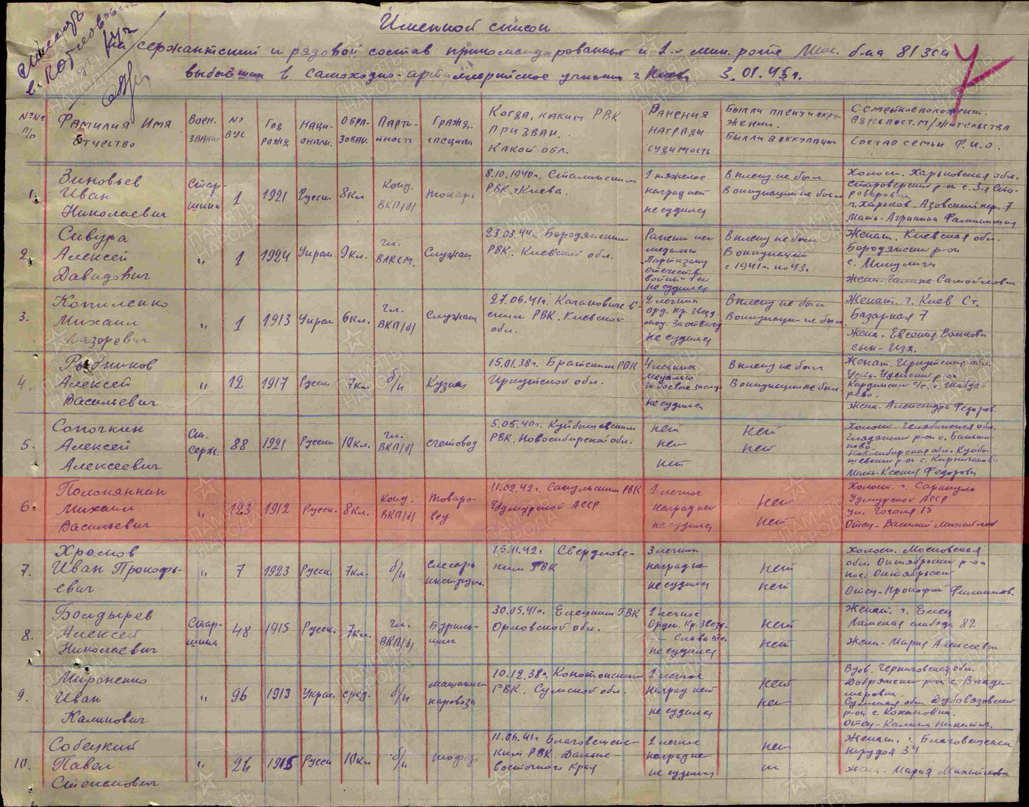 Дата окончания службы: декабрь 1946 г.