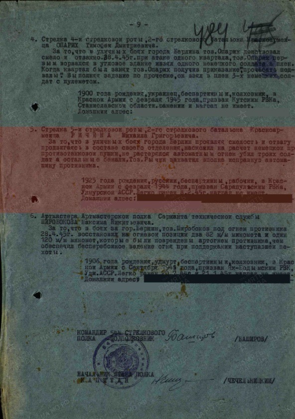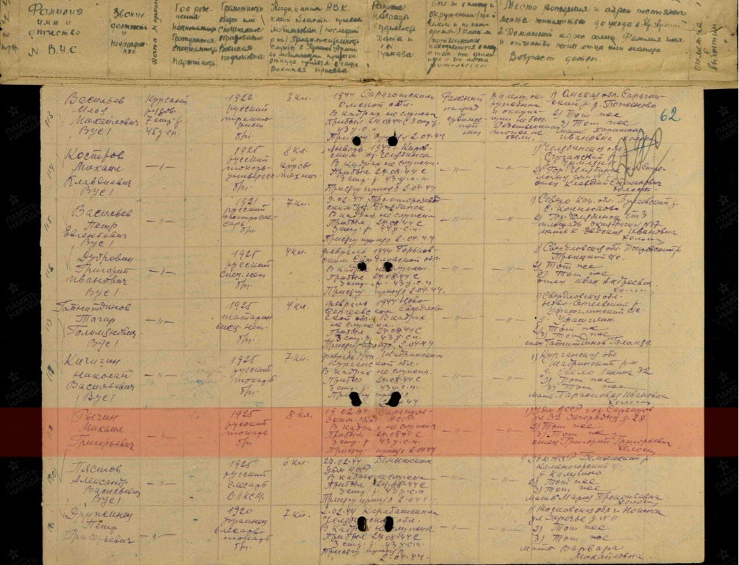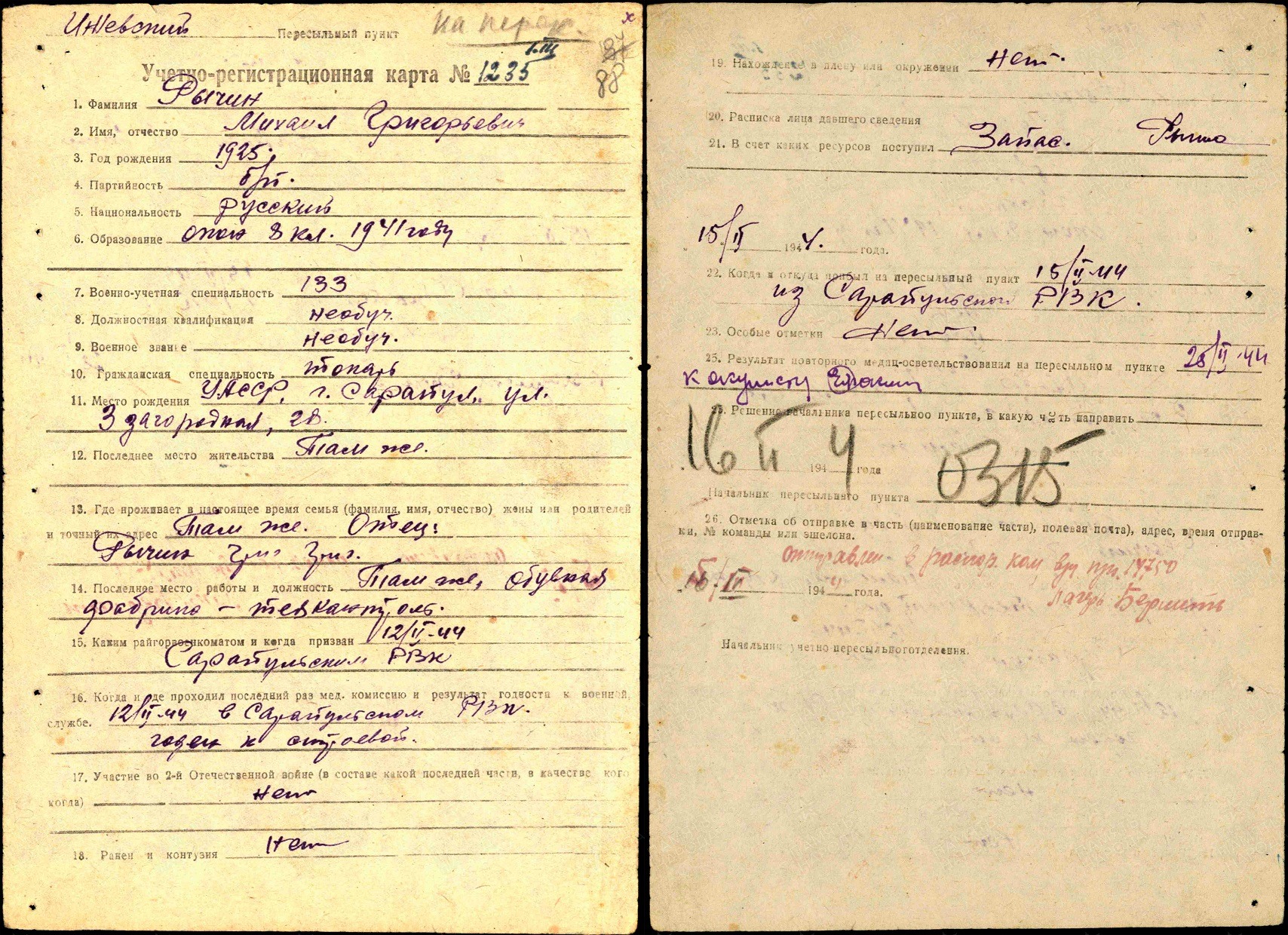 Родственники: отец, Рычин Григорий Григорьевич, г. Сарапул, ул. Загородная, д. 28.