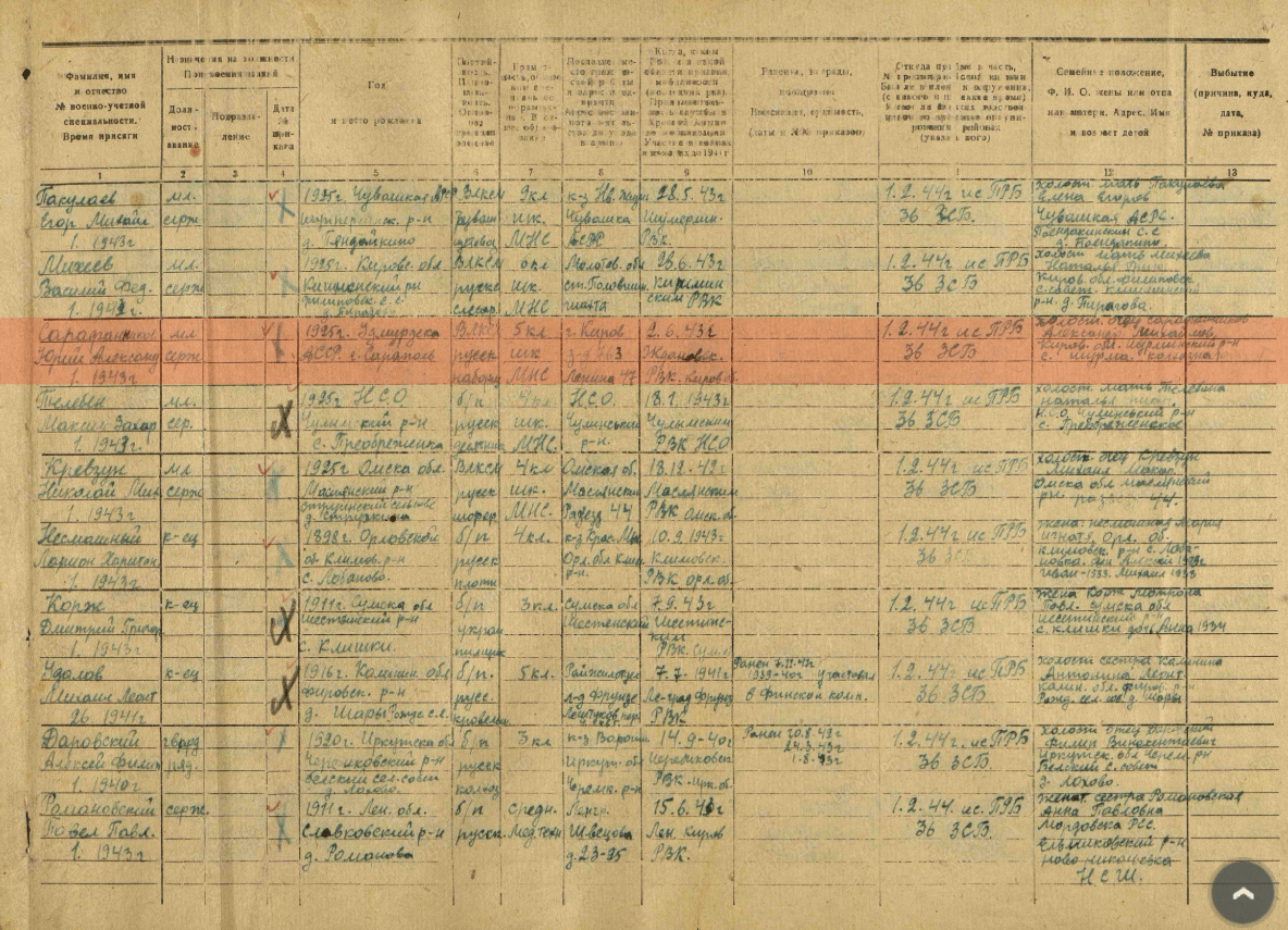 Место службы: 339 разведывательная рота, 268 стрелковая дивизия, 3 Прибалтийский фронт