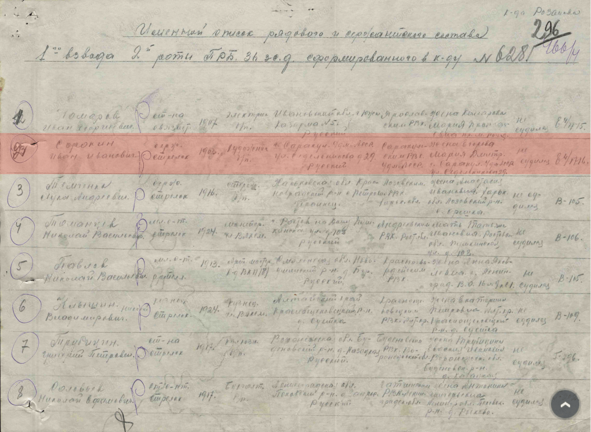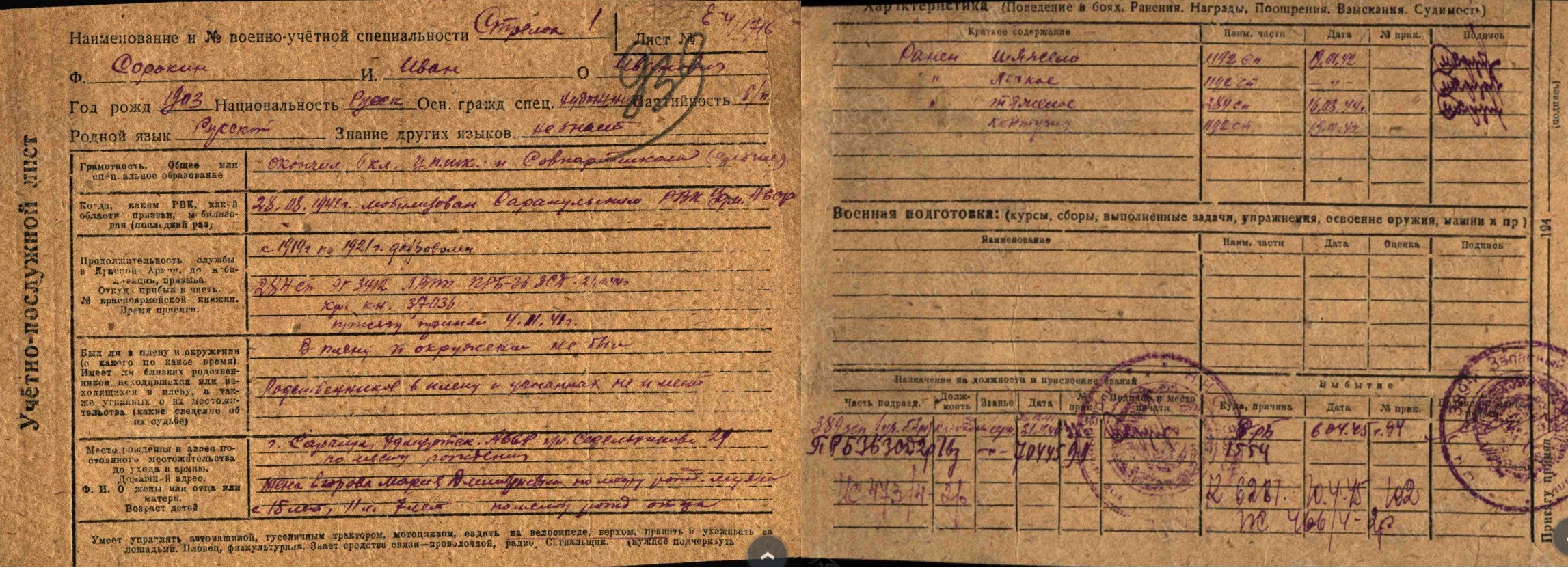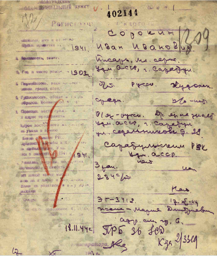 ЦАМО РФ. Ф. Картотека ПРБ 36-й зсд, д. 1120901. Ф. Ленинградский ВПП, оп. 530762, д. 43211.