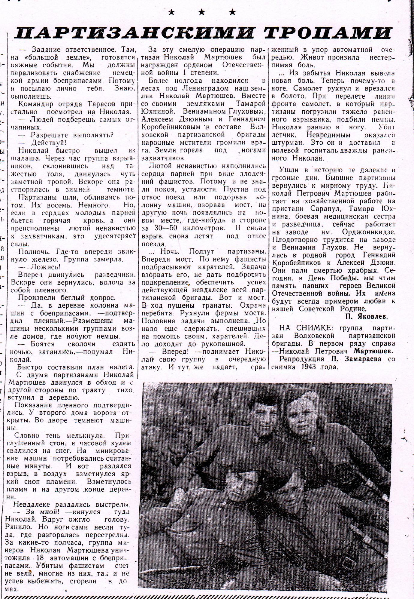 Яковлев, П. Партизанскими тропами