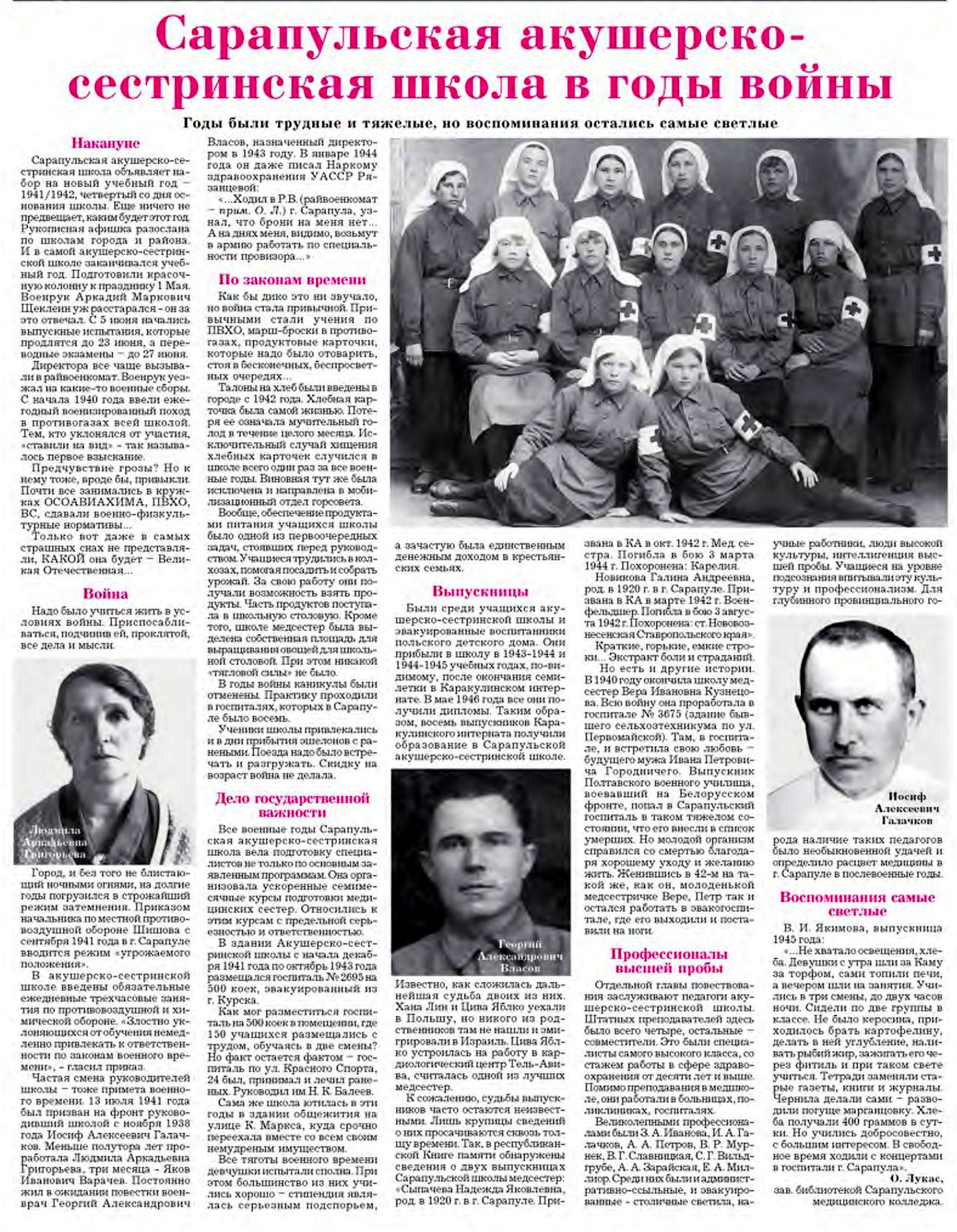 Лукас, О. Сарапульская акушерско-сестринская школа в годы войны.